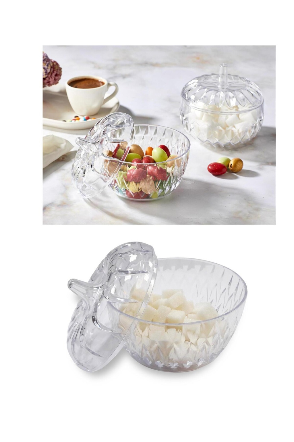 | 2'Li Mika Dekoratif Şekerlik Lokumluk Seti Evinizin yeni gözdesi 2'Li Mika Dekoratif Şekerlik Lokumluk Seti! Klasik ve nostaljik tasarımıyla göz alan yuvarlak kesim 2'Li Mika Dekoratif Şekerlik Lokumluk Seti ile misafirlerinize şeker, çikolata, lokum vb. ikramlarınızı sunabilir, sohbete tatlı bir başlangıç yapabilirsiniz. Çok şık ve farklı bir tasarıma sahip olup, tasarımıyla göz kamaştırmaktadır. Bayram şekerliği ya da normal şekerlik olarak kullanılabilir. Sadece şekerlik olarak değil, farklı atıştırmalıklar için de kullanabilirsiniz. 2 farklı tasarıma sahip bu ürünler sunumlarınıza şıklık katacak. lk kullanımdan önce yıkanmalıdır. Ürün Rengi: Şeffaf Ürün Ölçüleri: 12 cm x 12 cm çapındadır. Paket İçeriği: 1 Adet 2'Li Mika Dekoratif Şekerlik Lokumluk Seti |