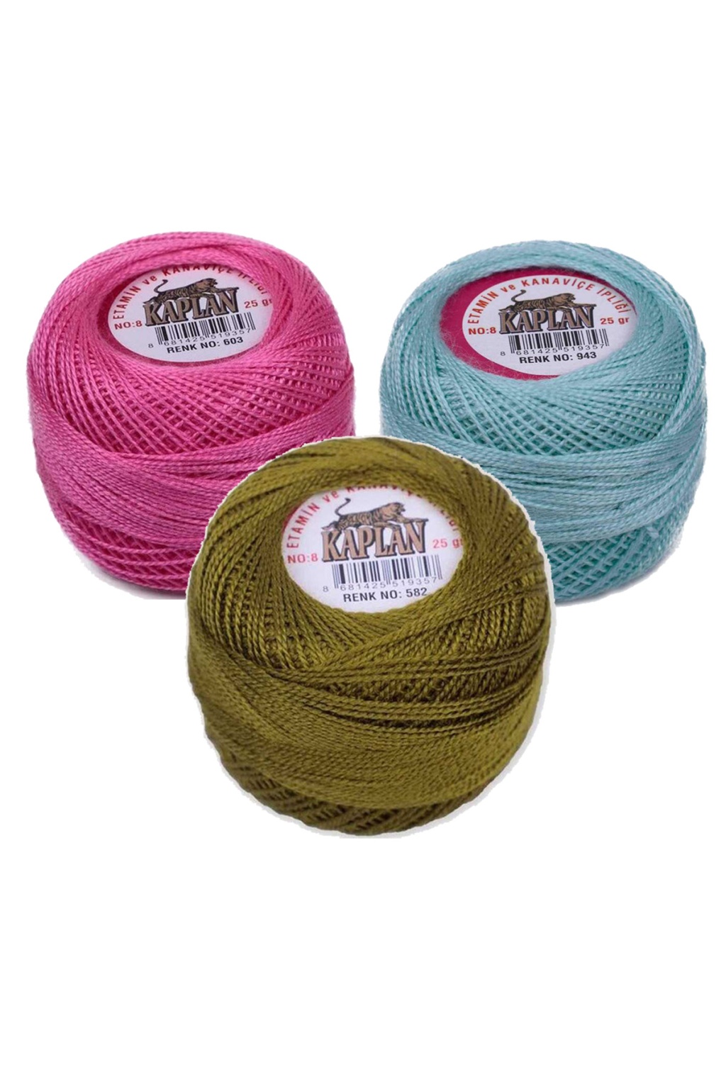 | 3 Adet Kaplan Etamin Ve Kanaviçe İpi 8 No Kod/Renk: 603 - 943 - 582 - Ryl |