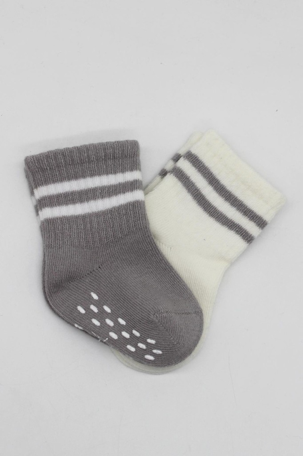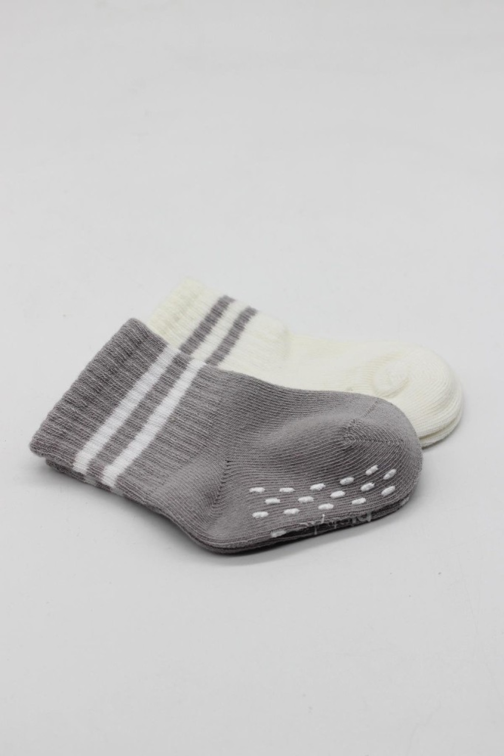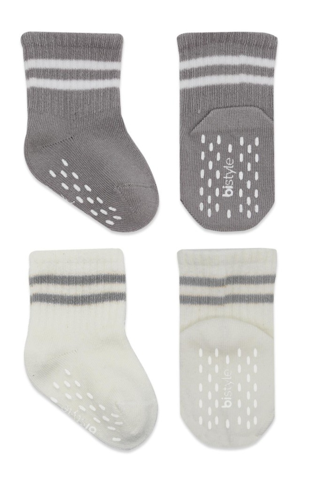 Çemberli Kaymaz Soket Çorap 2'Li BS10125 Gri Ekru