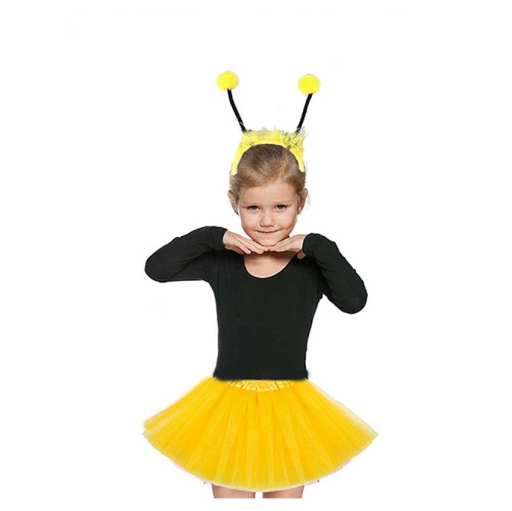Gösteriler İçin Sarı Arı Tütü Etek Ve Sarı Ponponlu Arı Taç Seti