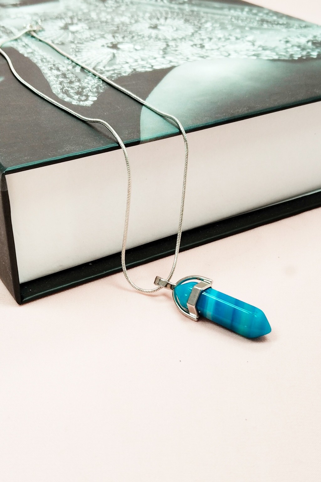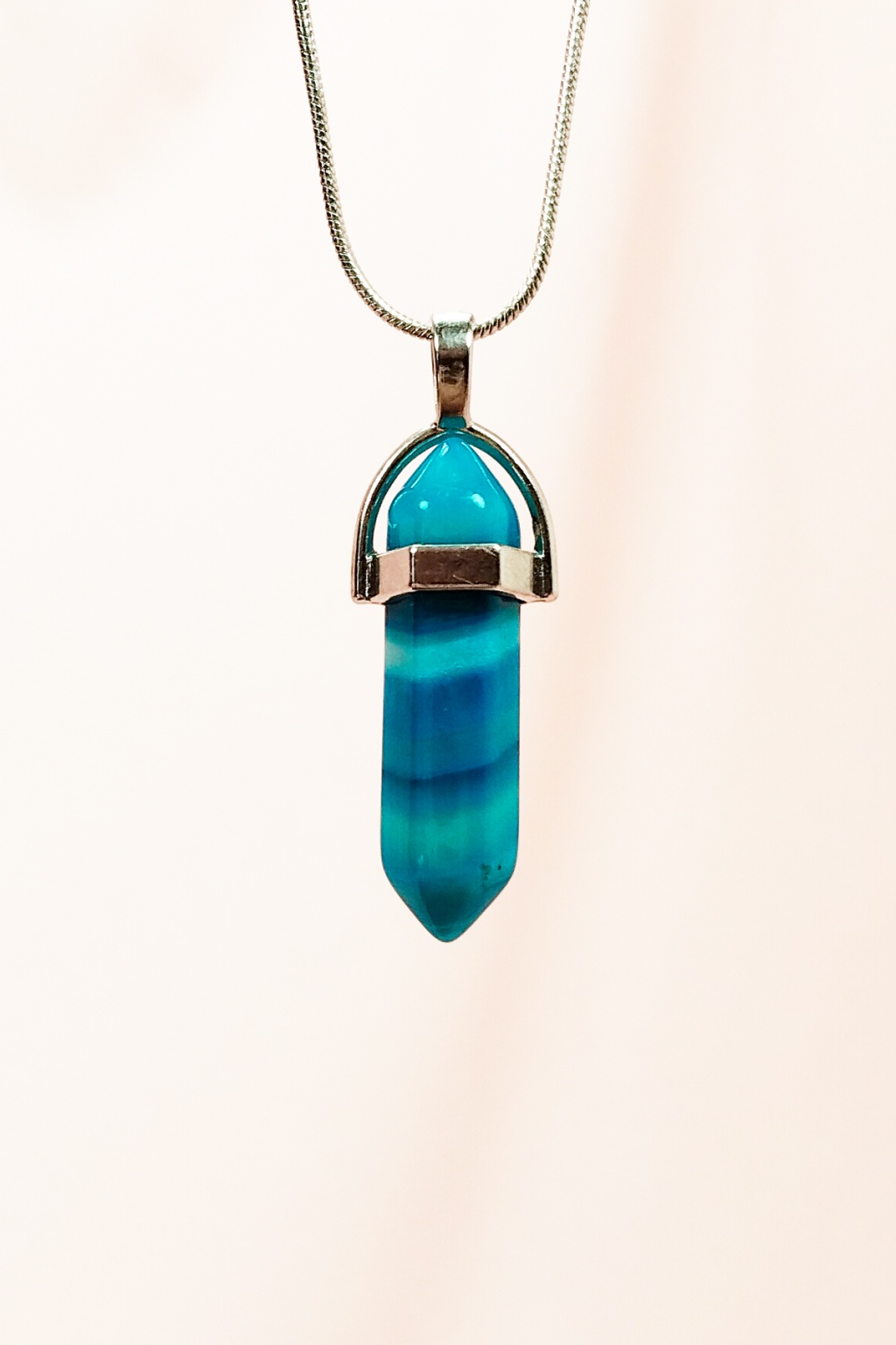 | Mavi Akik Doğal Taşı Zincirli El Yapımı Tasarımlı Kolye Uç: 3,5 cm Zincir: 20 cm Kutulu |