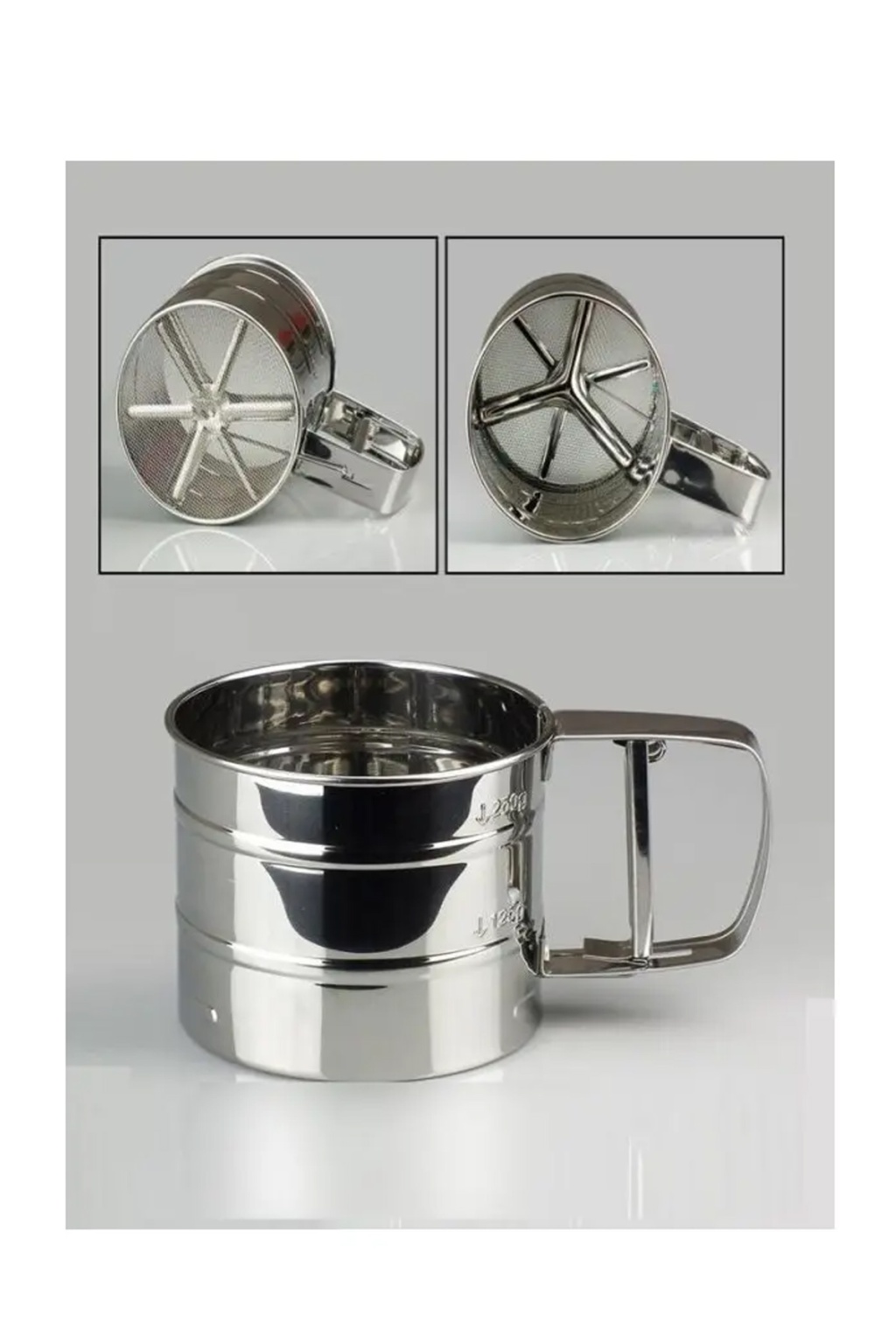 | Çelik Paslanmaz Metal Mandallı Un,Pudra Şekeri,Nişasta,Kakao Eleği Tetikli un eleği yardımı ile un,şeker,nişasta gibi toz kıvamında olan kuru gıdalarınızı eleyerek incelmesini sağlar pasta kurabiye ve benzeri hamur işleri yapımında topaklaşmalarını önlerek tarifinizi birebir uygulayabilirsiniz. Mandallı un eleği içerisinde bulunan değirmen kısmı ile un şeker ve benzeri kuru gıdalarınızı mandal kısmından tetikleme yaptıkça incelterek alt bölümünden eleyerek tahliye eder. Paket İçeriği : 1 Adet Büyük Boy Metal Un Eleği |