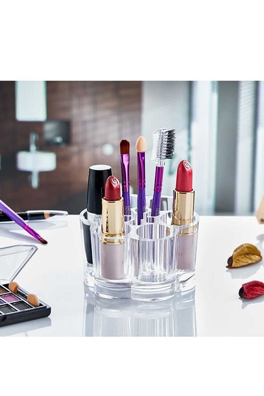 | Ruj ve fırçalarınızı düzenleyerek hayatınızı kolaylaşırır. Orta bölüm, kalem, fırça gibi ince ürünler için. Dış kenarlar, daha geniş fırça, göz kremi gibi dikey kullanılan ürünlere uygundur. Çap : 9cmYükseklik : 6cm |