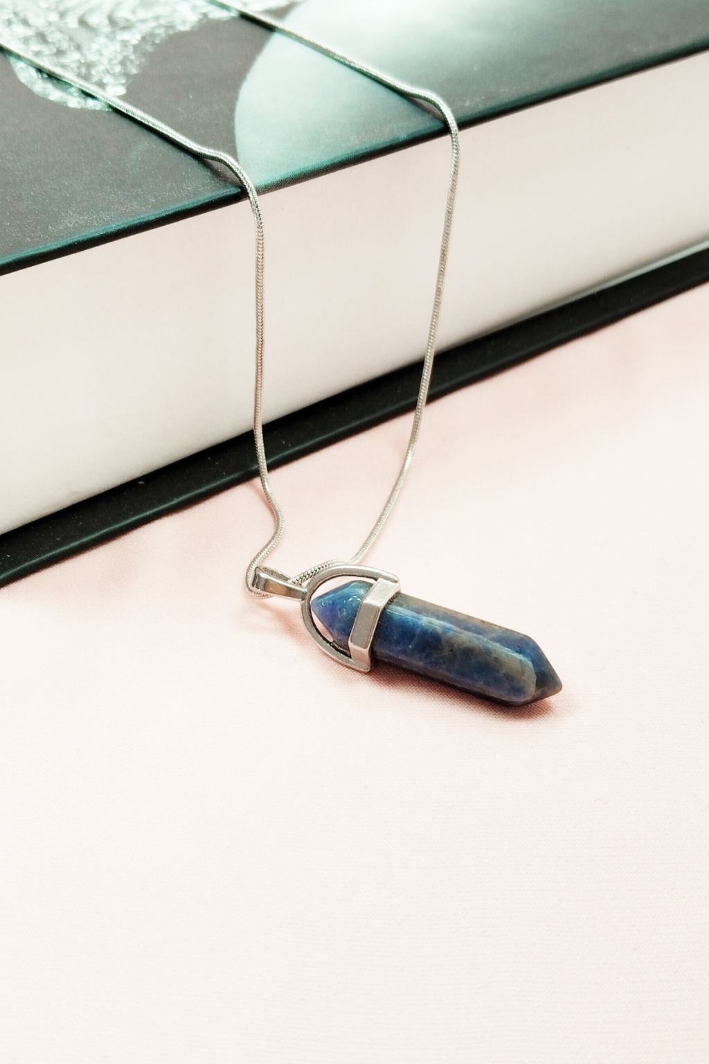 | Sodalit Doğal Taşı Zincirli El Yapımı Tasarımlı Kolye Uç: 3,5 cm Zincir: 20 cm Kutulu |