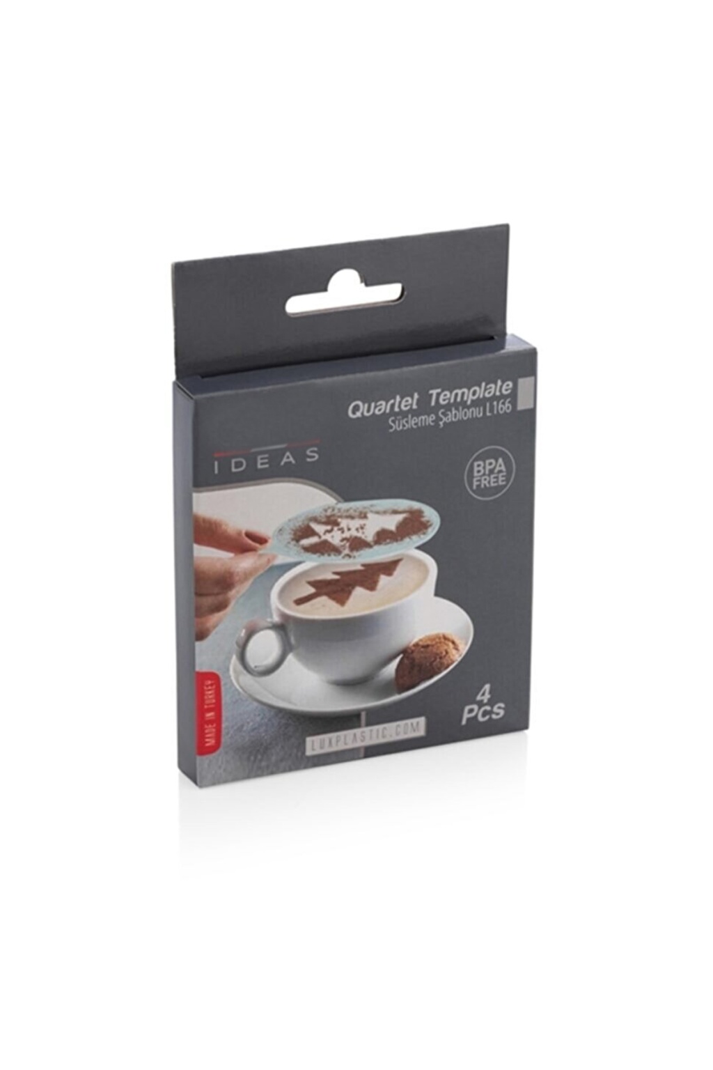 | 4lü magic süsleme şablonuıle daha keyifli sofralar! Kahve süsleme aparatlarıyla çok güzel sanat eserleri oluşturabilirsiniz. 4 adet kahve süsleme aparatıyla istediğiniz şekli kahvenizin üzerine çıkartabilirsiniz. 4 farklı şablon set halinde bulunmaktadır. |