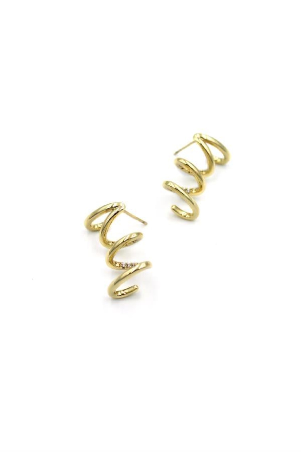 Taşlı Kıvrımlı Küpe - Altın