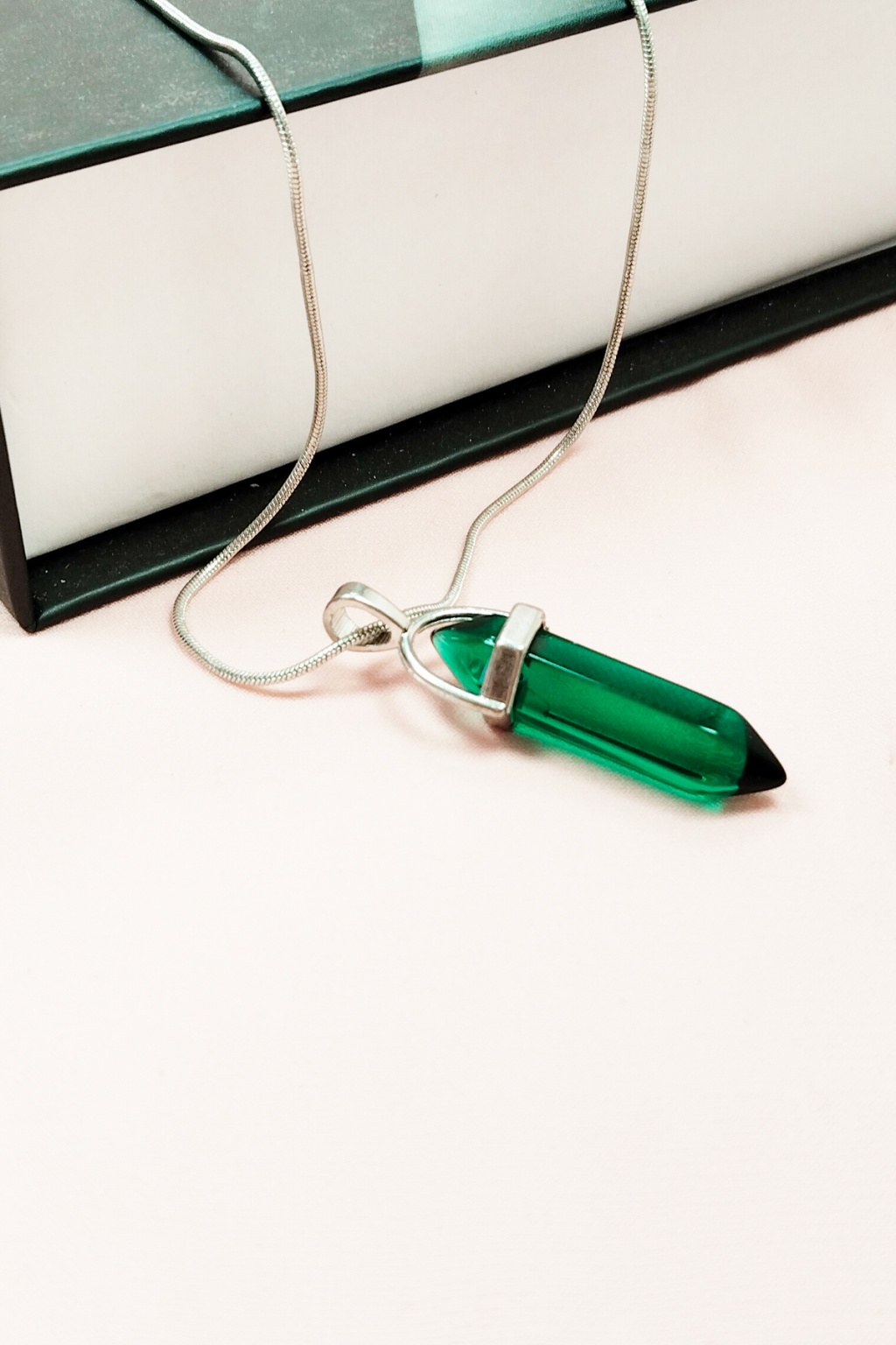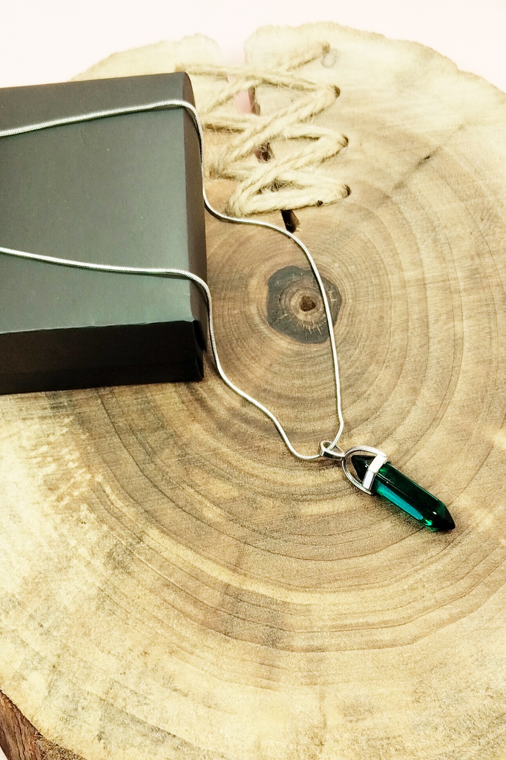 | Yeşil Kuvars Doğal Taşı Zincirli El Yapımı Tasarımlı Kolye Uç: 3,5 cm Zincir: 20 cm Kutulu |